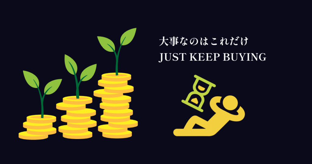 タイミングを読もうとするより、just keep buying。買い続けること、そして買ったら持ち続けることが最強の戦略だ。